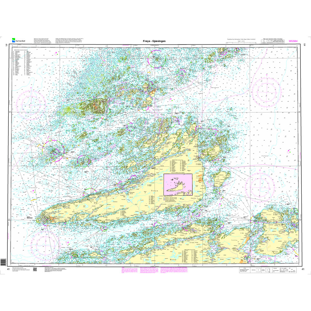 Kartet som dekker Frøya - Gjæsingen er det offisielle sjøkartet i hovedkartserien utviklet av Kartverket. Sjøkartet er i målestokk 1 : 50000. Dette kartet blir levert på rull og har fysisk størrelse 107 cm x 82 cm. Disse sjøkartene trykkes på bestilling (nyeste utgave fra Kartverket). Velg mellom papirkart eller kart på tyvek. Papirkart passer veldig godt som veggkart, mens tyvek er et vanntett og rivesikkert materiale, noe som gjør at dette passer spesielt godt i båten. Info til våre forhandlere: minstebestilling av sjøkart er 10 stk. Du kan blande ulike varenr., så lenge totalantallet blir minimum 10. Bestiller du andre varer fra Nordic Outdoor sammen med dette kartet, kommer varene i to forsendelser. Sjøkartene trykkes på din bestilling og sendes separat, mens andre fisk- og friluftsvarer sendes direkte til deg fra vårt lager i Arendal.