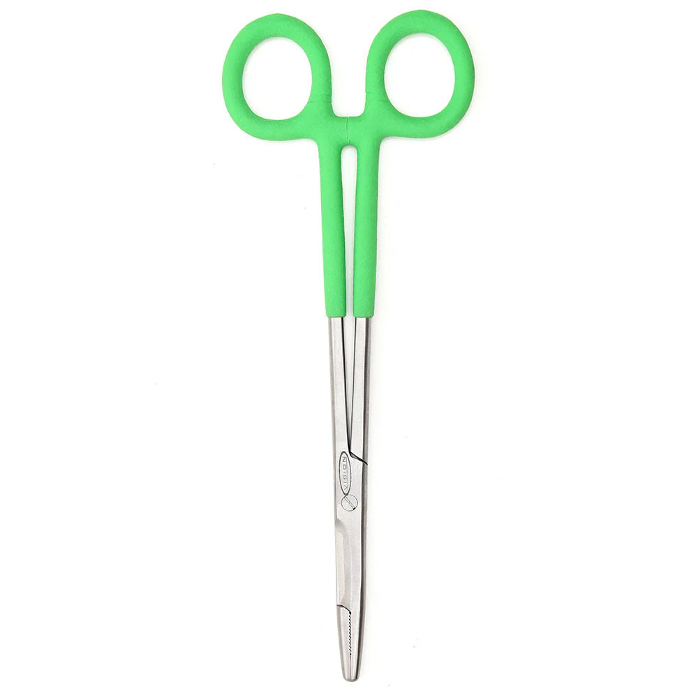 The scissor blades are made from extra high quality German Tungsten Carbide allowing you to cut even the wire leaders with ease. Soft bright green handles are comfortable even when it’s really cold.